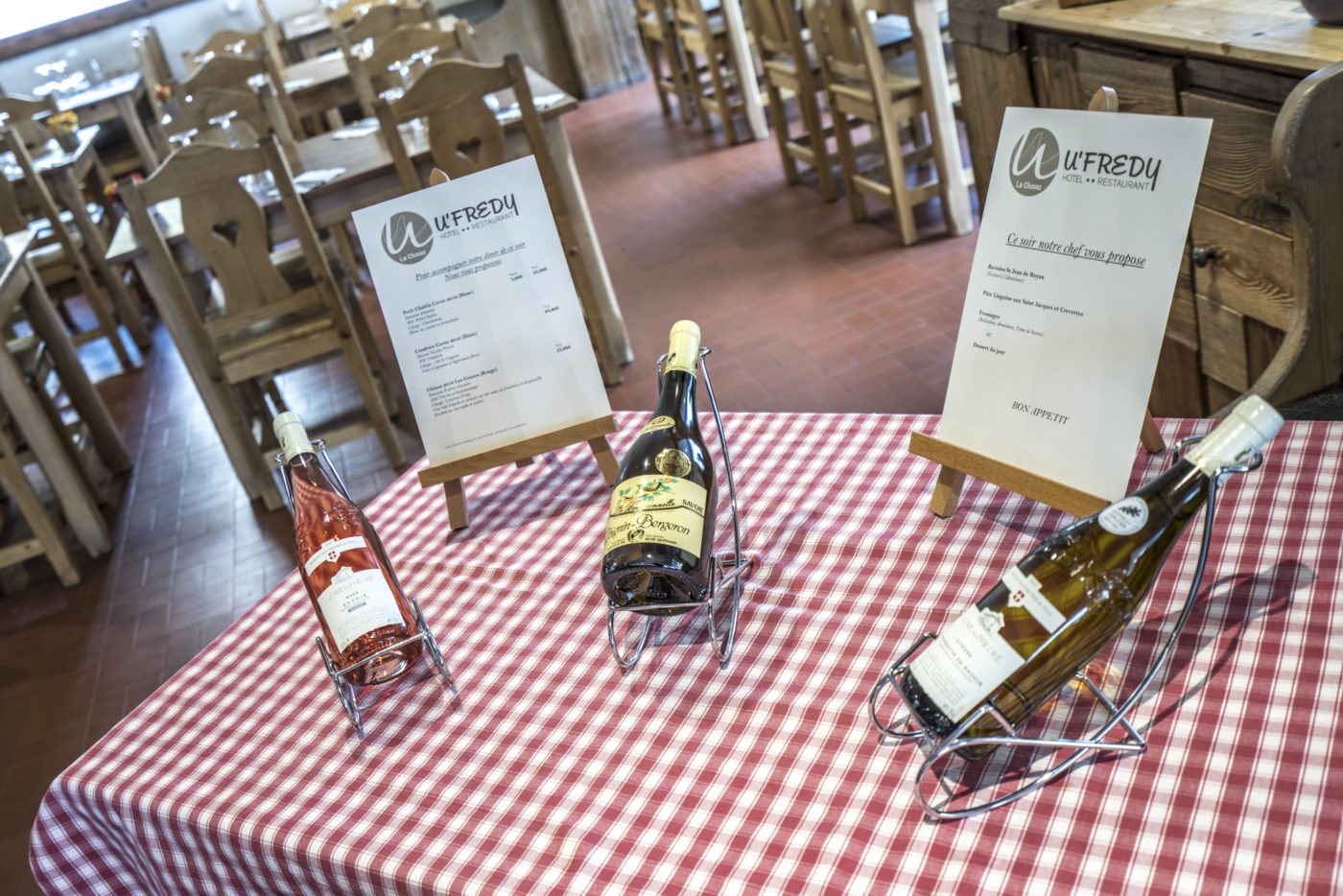 Le restaurant de l’hôtel U’fredy vous accueille le midi sur sa grande terrasse face aux pistes de ski, et le soir à l’intérieur au coin du feu.